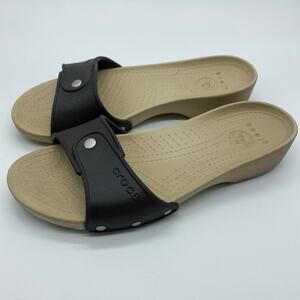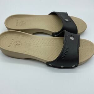 Women’s Sz 7 Brown slip on Crocs. Good preowned condition.