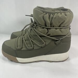Stay cozy and stylish this winter season with these green Thermolite boots. Perfect for skiing and other winter sports, these boots are designed to keep your feet warm and dry with their water-resistant feature. The drawstring closure ensures a snug fit while the standard shoe width and solid pattern make them a great addition to any winter outfit.