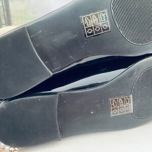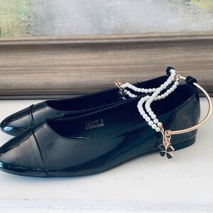 Women’s Size 8 Cap Toe Ankle Pearl Chain Clover Charm Ballerina Flats Black Patent Leather. Like new condition. Formal, party, special occasion, gold and pearls.