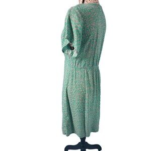 Womens Sz 8 Dress Ditsy Floral Print Above Knee Green V-Neck Short Sleeves