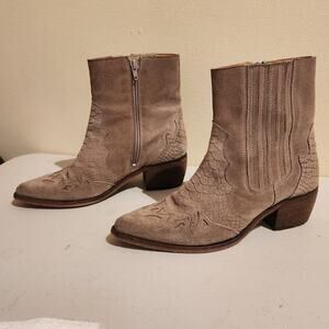 Women's Sz 8 US/ 38 EU Boho Western Beige Suede Cowgirl Style Boots Coachella