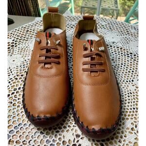 Women's Sz 8.5 M Leather Soft Bottom Brown Flat Loafers Handmade Non-Slip Sk 622