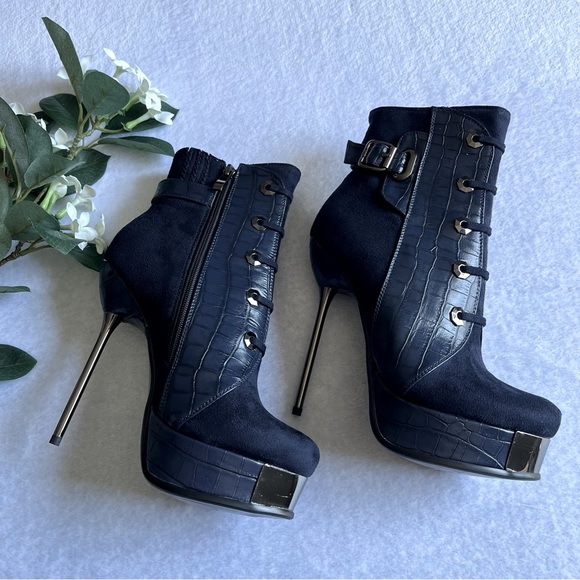 Women’s Sz 9 Navy Blue Platform Super High Heels Ankle Boots