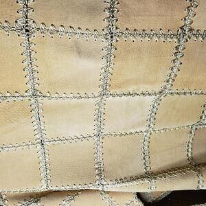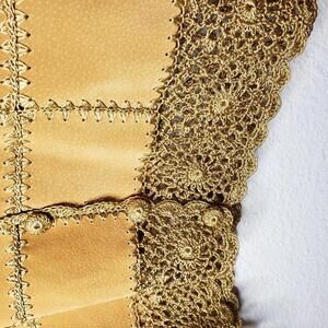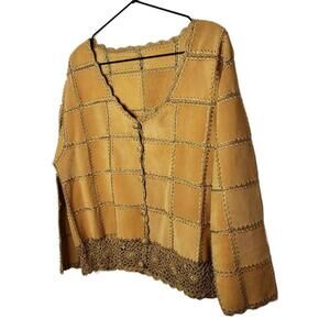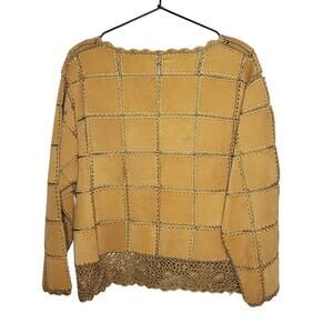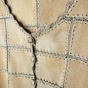 Women's Sz L Handmade Woven Patchwork Leather Jacket Crochet Lace Trim (1630)