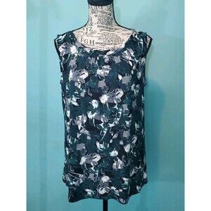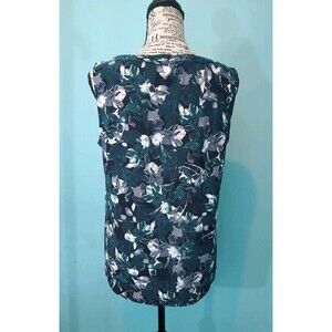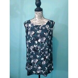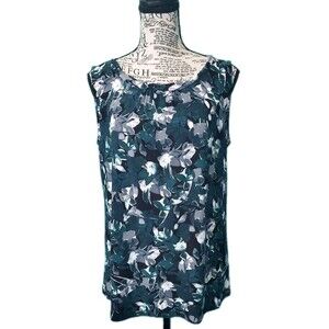 Womens Sz M Dressy Tank Top Dark Green Floral Pullover Lightweight By Kasper.
