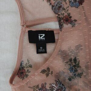 Women's Sz M IZ Byer Pink Floral Cold Shoulder Mesh Overlay Top Boho Romantic
