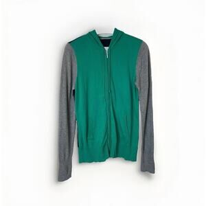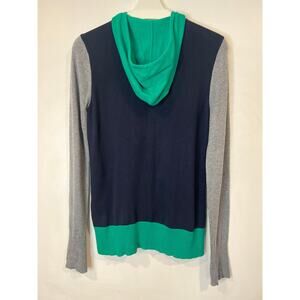Womens Sz M JC PENNEY Cashmere Blend Color Block Full Zip Hoodie Green Blue Gray