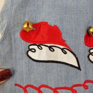 Style and Materials: 100% cotton. Embroidered, bells and appliqué details. Button up Shirt. Detachable Shoulder Pads. Santa Claus hat details. Perfect Vintage piece for the Holiday Season! Bells and Santas.