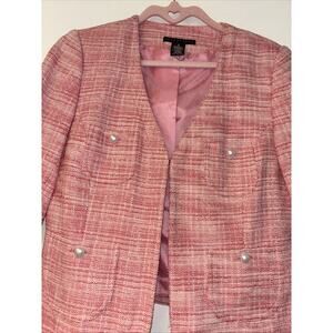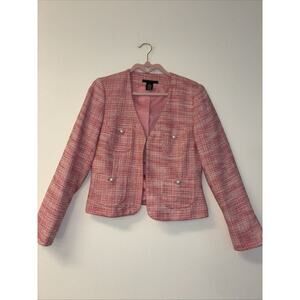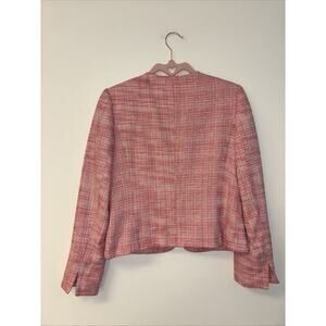 Women’s Sz Med Jacket Coat Pink Tweed Houndstooth Old Money VTG Spring Summer