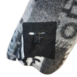 Womens Sz Medium Gray Wool Blend Jacket Poland Lagenlook Patchwork Mixed Print