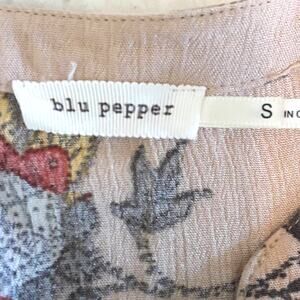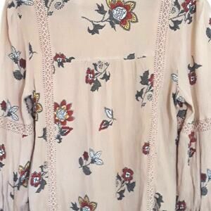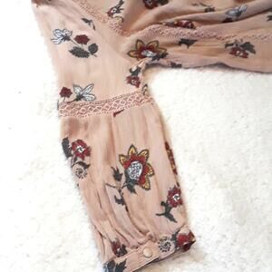 Womens Blu Pepper Sz S BOHO Cottage Core Split V-neck Floral Lace details Balloon Sleeves Blouse