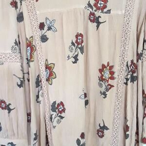 Womens Sz S Beige Gauzy Floral Fairy BOHO Cottage Core V-Neck Pullover Blouse
