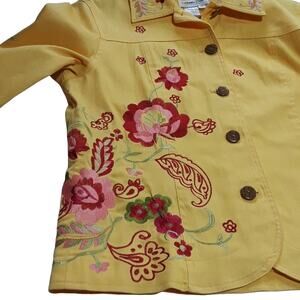 Coldwater Creek Womens Sz S Petite Yellow Embroidered Western Cowgirl Art to Wear BOHO Jacket