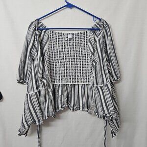 Womens Sz Small Old Navy Stripe Wrap Blouse Gray White V Neck Yk2 Peasant Beachy
