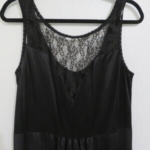 Womens Sz XL Black Vintage Nylon Lace Maxi Dress Whimsigoth Dark Fairy Slip