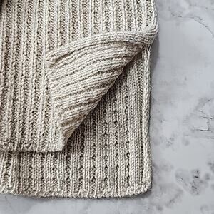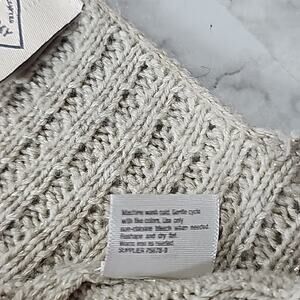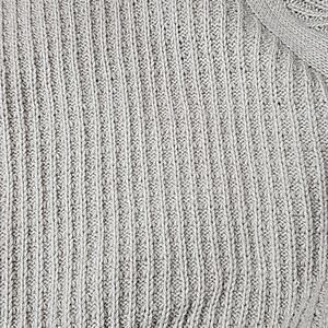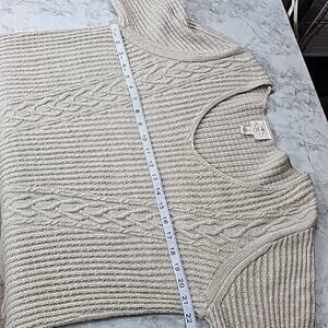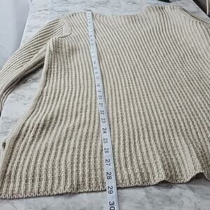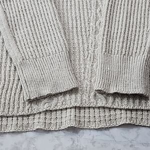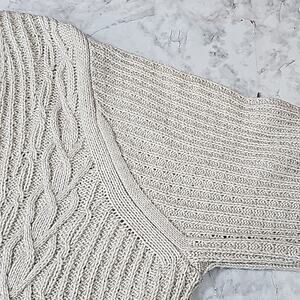Womens Sz XL Tan Silver Metallic Thread Cable Knit V-neck Tunic Sweater