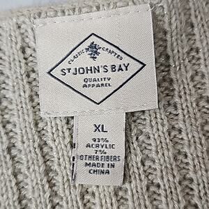 Womens Sz XL Tan with Silver Metallic Thread Cable Knit V-neck Holiday Sweater St Johns Bay