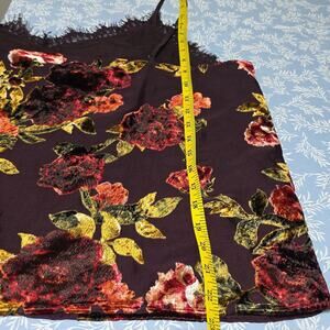 Womens Sz XL Velvet Burnout Dark Floral Lace Trim Camisole Plum, Red, Gold A.N.A.