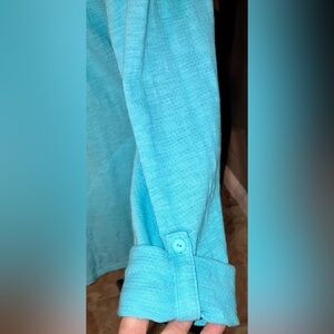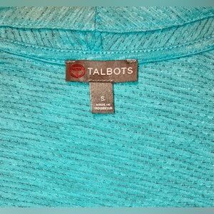 Excellent Women's T By Talbots Light Blue Roll Tab Sleeve Lightweight Cardigan with pockets, size Small. Measures 18 inches across the front of chest, armpit to armpit, and is 27 inches in back length, 31 inches in front length at longest point. Comes from a clean, smoke free home. Any questions, please ask. Thanks :)