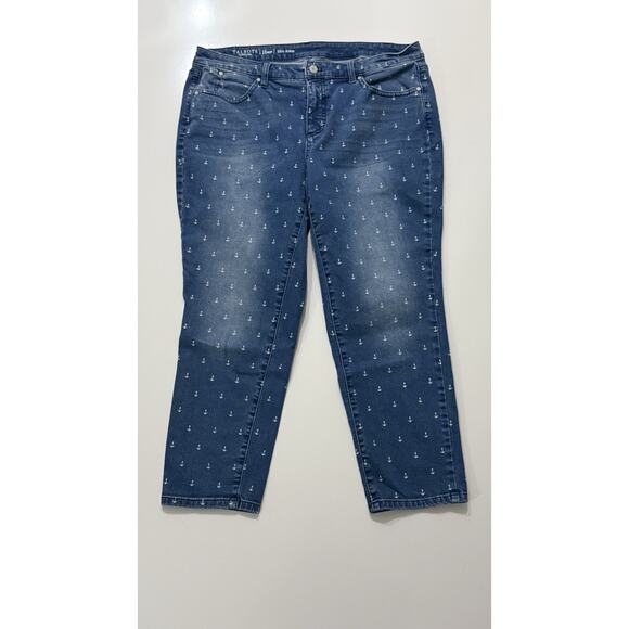 Women's TALBOTS Blue Flawless Five Pocket Slim Ankle Jeans Anchor Print Sz 16wp