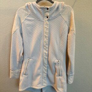 Women's THE NORTH FACE Quilted LONG Zip Jacket Hoodie BEIGE Size Medium