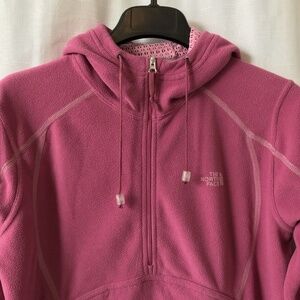 Women's THE NORTH FACE TKA MICRO 1/2 Zip Hoodie Pullover Fleece Size Large pink
