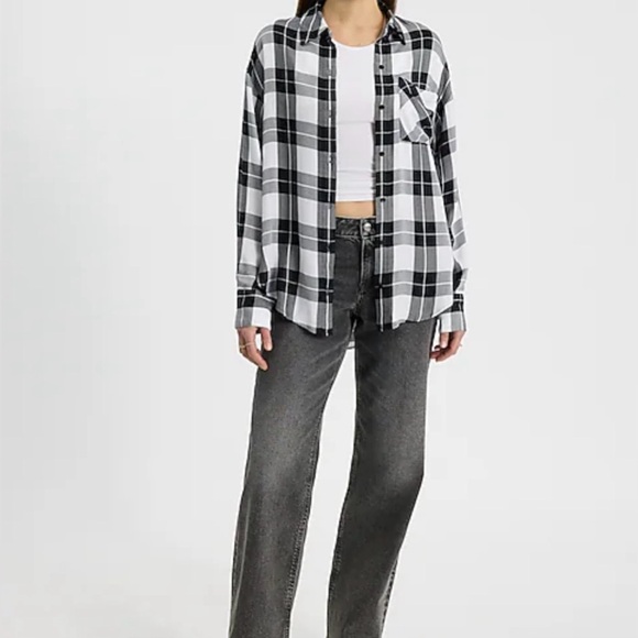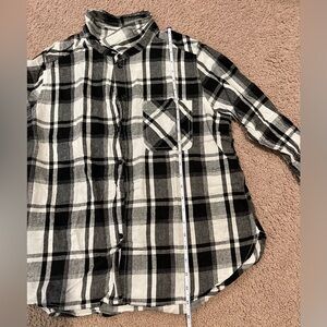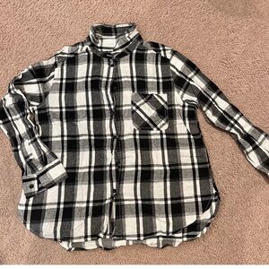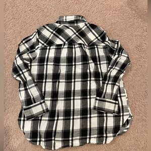 Women's TIME TRU black &white plaid flannel long sleeve shirt