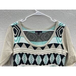 Women's T/O Sweater Tribal Print Short Sleeve Sweater Dress Size Medium