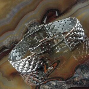 Womens TOMMY BAHAMA DIamond Shores Silver Bracelet Watch TB4017 ~ Rectangle Case is Approx. 22MM Wide By 32MM High with Diamond Accents on Bezel ~ Beautiful Mother of Pearl Dial with Silver Tone Hands and Markers ~ Push Button Fold Over Deployment Clasp ~ Watch will Fit up to a 7.5" Wrist ~ Excellent Condition ~ New Battery Installed Runs Great ~ Worn only a Handful of Times ~ All Sales Final on Watches.