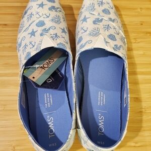 Women's TOMS Alpargata White Shimmer Woven Seahorses/Seashell Print Size 8.5