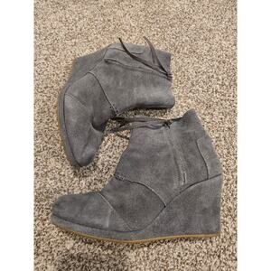 Women's TOMS Gray Suede Wedge Booties Side Zip | Size 9.5
