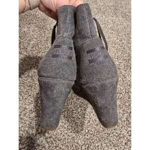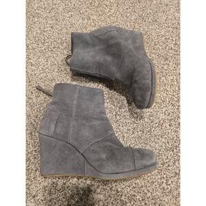 Women's TOMS gray suede, wedge booties that zip on the sides. Some of the suede is "roughed up" and not as smooth, minor wear.