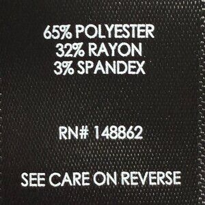 * MATERIALS- 65% Polyester 32% Rayon 3% Spandex