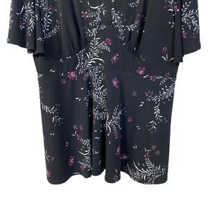 Women's TORRID SZ 2 Short Sleeve Top Blouse Black Floral Print Stretchy