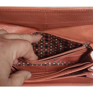 Womens TOUS WALLET Peach Leather Zip Around Clutch Credit Card Holder Large