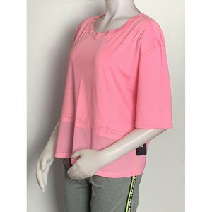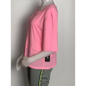 Women’s TShirt Size L Bebe Sport short Sleeve with mesh strap bottom pink
