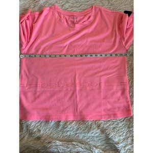 Women’s TShirt Size L Bebe Sport short Sleeve with mesh strap bottom pink . New with tag Shipped with USPS First Class.
