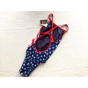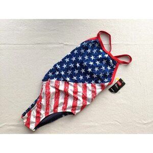 Women's TYR One Piece Swimsuit Size 34 Red White Blue Patriotic Stars Flag NEW