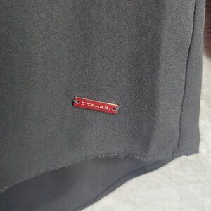 This elegant Tahari blouse combines a streamlined design with functional details, making it a versatile choice for professional and casual settings alike.