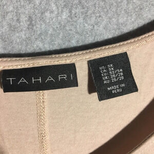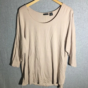 Womens Tahari Blouse Scoop Neck Tan Minimalistic Capsule Wardrobe Closet Staple