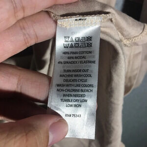 Measurements: Chest is 25 inches. Armpit to bottom hem is 16 inches. Material is 48% Pima cotton, 48% modal, 4% spandex.