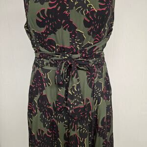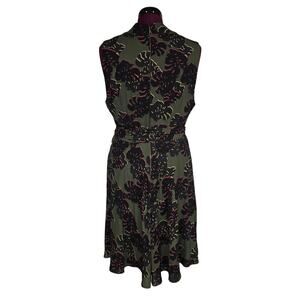 Women's Tahari Olive Black Abstract Floral A-Line Self Tie Dress | Size 16