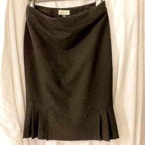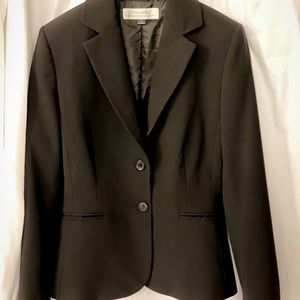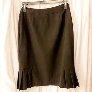 Pleated B-stretch skirt and notch collar Bi-Stretch jacket. 2 button jacket is tailored with besom pockets, and bottom trim sleeves. Skirt is slightly flared with a narrow waistband. Pleated detail with a hidden back zipper closure. Polyester lining. Polyester rayon elastane