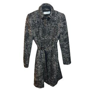 This Tahari vintage P coat for women is a stylish and timeless piece made of polyester with a touch of wool for added warmth. The black and white color scheme adds a classic touch to the multicolor design, making it versatile for any outfit. The polyester lining provides a comfortable feel, while the brand's reputation ensures quality and durability in this coat that is perfect for any woman looking to stay warm and fashionable during the colder seasons.