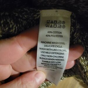 A womens long sleeve hooded cardigan. The cardigan has two front pockets and no buttons. The cardiagn is a little on the heavy side. A