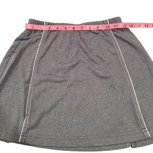 Cute, demin looking tennis/golf skirt with two front and back hems and hem slits.
