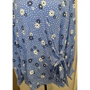 Women’s Talbots BLUE WHITE Floral Wrap Blouse Long Sleeve Viscose Sz 2X NWT