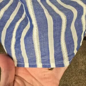 Excellent condition, women's Talbots blue and white striped blouse with crochet detail. This material is lightweight and doesn't stretch.