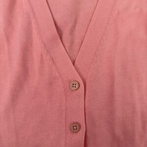 Brand new with tags - Women’s Talbots Button Front Girlfriend Cardigan Long Sleeve V-Neck Sweater. Has buttons down the front (extra button on label), v-neck, and slits on the bottom sides. Color: gardenia pink. Size: XS.