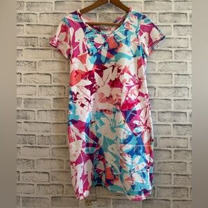 Women’s. Talbots. Cozy Crush cross back dress. Brushed floral. UPF 50. Pockets. Excellent condition. Size Petite.